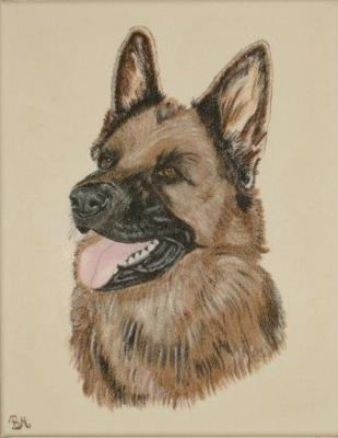 Frei nach der Serie "Kommissar Rex" fühlte ich mich inspiriert einen Schäferhund zu malen. Da dieses Bild in den Anfängen meiner Malerei entstand, war es für mich auch eine große Herausforderung.....aber ich hatte riesen Spaß dabei :-)