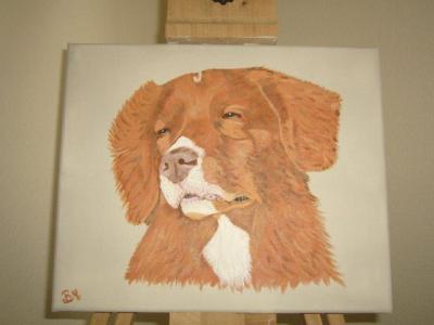 Das ist eine Auftragsarbeit. Eddie ist ein "Nova Scotia Duck Tolling Retriever" kurz "Toller" genannt und ist die kleinste Rasse aus der Retriever Familie.
